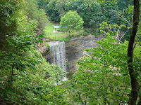 The lake is still very low. Several years ago, the state decided to drop the lake depth considerably to work on the earthen dam at Wolf Creek. So the lake lost about 30-40 feet of water! 76 Falls was named as it was about 76 feet from top to bottom of the then creek bed. After the lake went in many years ago, the falls were just over half their original height. There used to be house boats motoring around under the water of the falls. Not any more. The water is only about 10 feet or so deep and the old creek bed is once again fully visible.